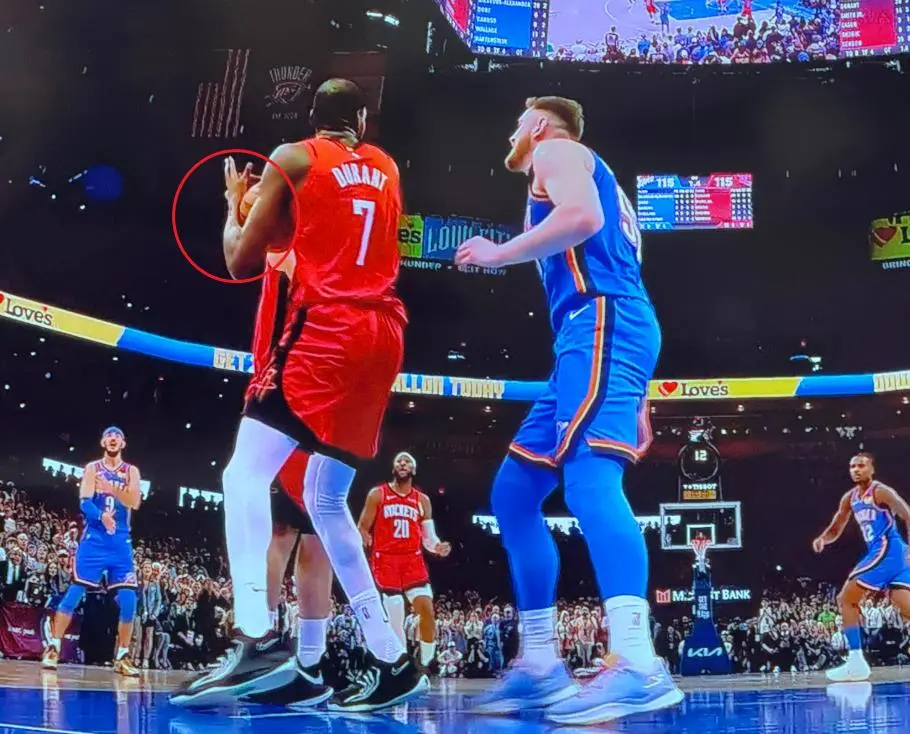 第一个加时最后时刻,火箭逃过一劫,杜兰特在球队没有暂停的情况下,已经做出暂停手势,好在申京及时制止,杜兰特逃过技术犯规,两队进入第二个加时。这是NBA历史上第六次揭幕战,进入到双加时比赛。