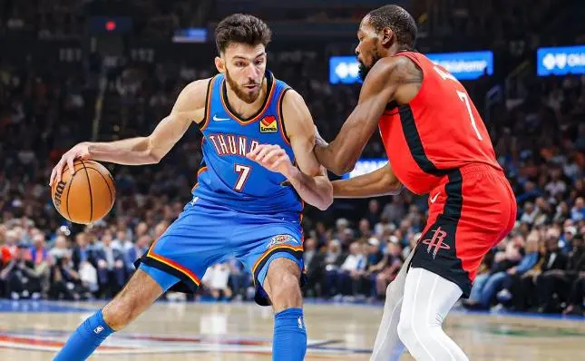第二节,霍姆格伦站了出来,半场9投7中,狂砍18分,用各种方式得分,几乎是凭一己之力扛着雷霆前进。而火箭则打得更加整体,杜兰特14分,申京接近两双(10分5板5助),阿门10分4助,多点开花,57比51,火箭维持着微弱优势。